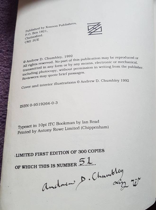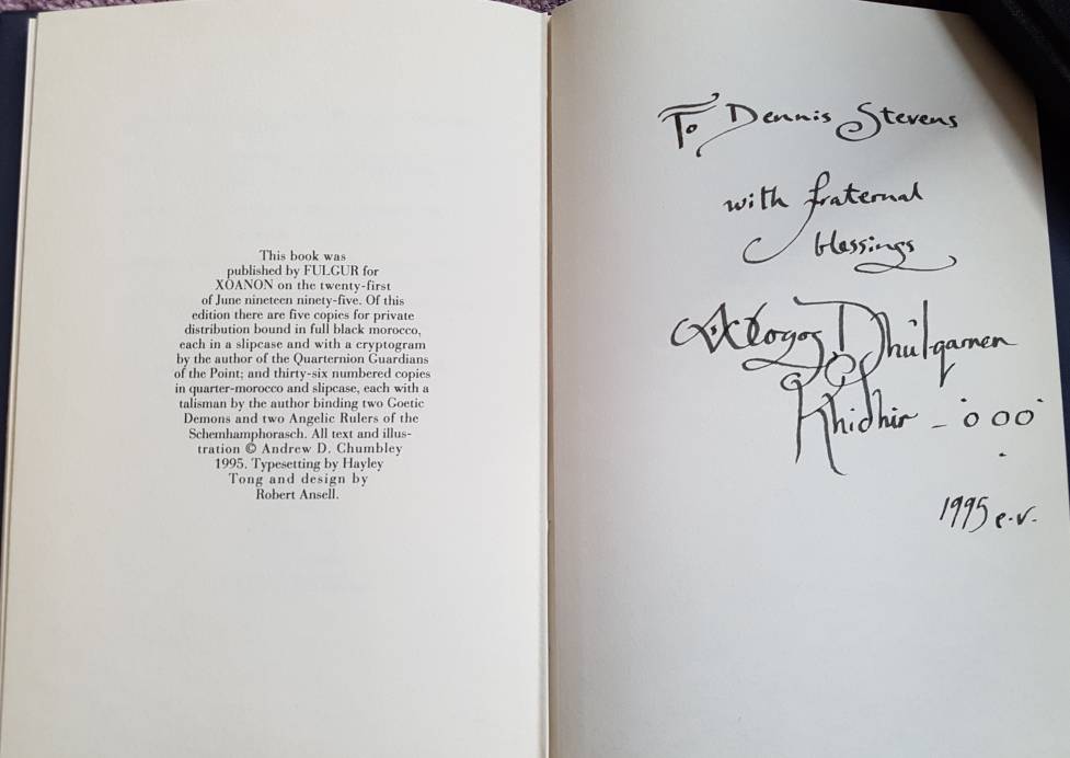 signed by the author “Andrew D. Chumbley” with the line of the 'y' extended